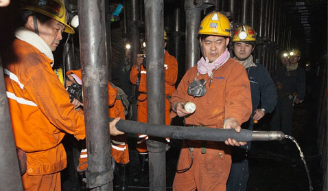 煤層注水是指在開采之前利用鉆孔向煤層注入壓力水。預先濕潤煤體,可以降低煤塵生成量。將水均勻地注入煤體,其水分達4%以上,可以防止突出發生。水改變了煤的力學性質,使應力分布均勻化,彈性能釋放速度變小,功率降低,沼氣排放速度降低,比初放時可降低90%。